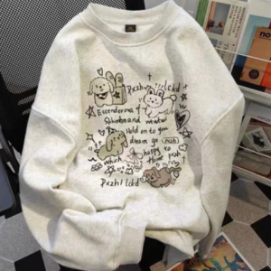 เสื้อแขนยาวคอกลม ลายการ์ตูนฮิต