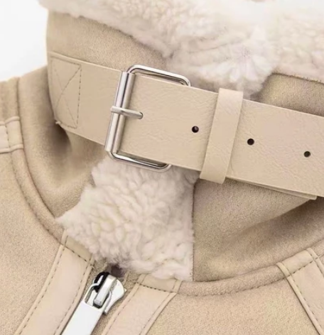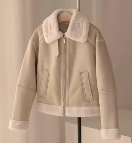 วัสดุ : ขนแกะเทียม, หนังกลับ สี : ครีม ขนาดรอบอก S : 42″ ขนาดรอบอก M : 44″ เพศ : หญิง